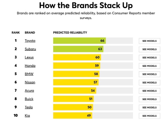 Bảng xếp hạng các hãng xe đáng tin cậy đảo chiều