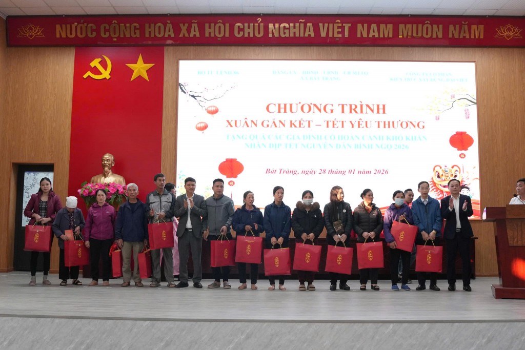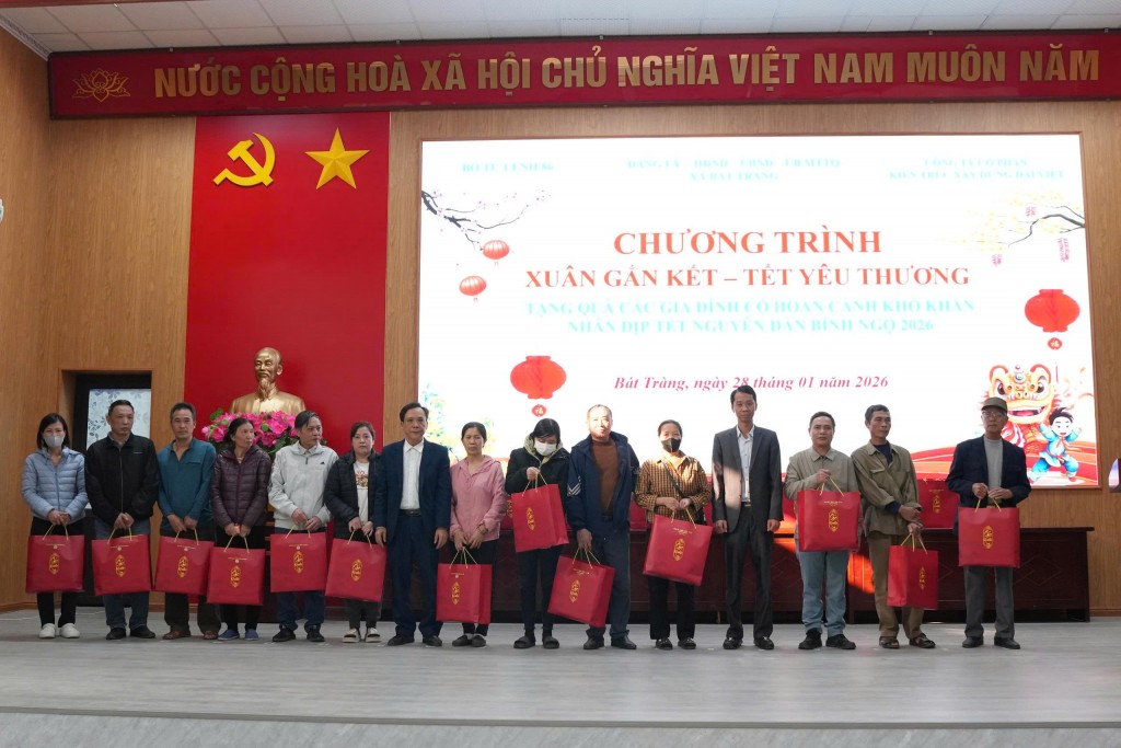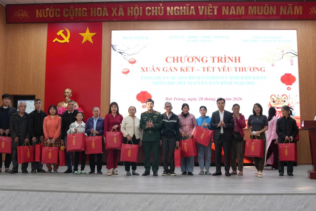Phát biểu tại chương trình, đồng chí Chu Anh Tuấn, Uỷ viên Ban Thường vụ Đảng uỷ, Chủ tịch Ủy ban MTTQ xã Bát Tràng trân trọng cảm ơn sự quan tâm, đồng hành của Bộ Tư lệnh 86 và Công ty Cổ phần Kiến trúc Xây dựng Đại Việt trong công tác chăm lo cho các đối tượng chính sách, hộ nghèo, hộ cận nghèo và các gia đình có hoàn cảnh khó khăn trên địa bàn.