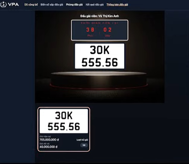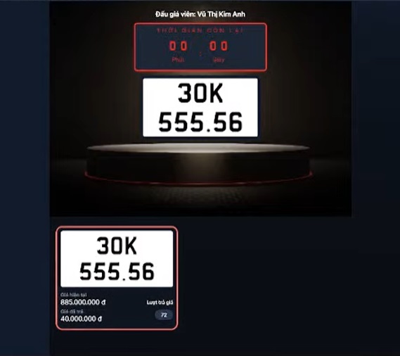 Biển số "sinh lộc" 30K - 555.56 được chốt giá 885 triệu đồng