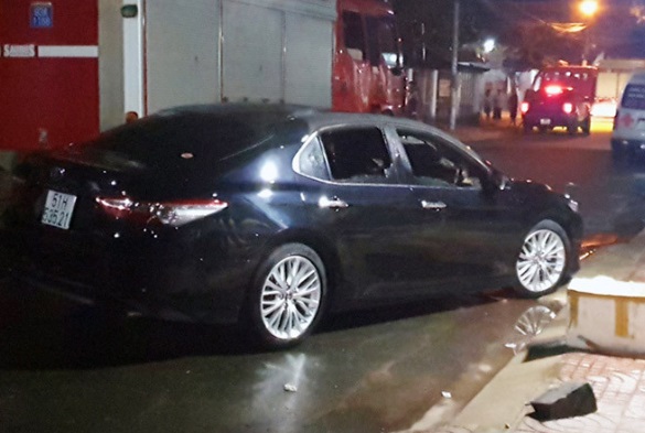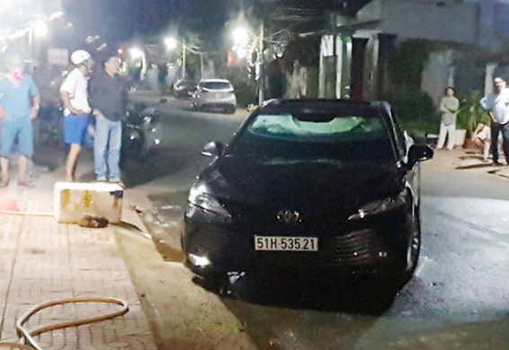 Khi người dân chạy ra xem thì phát hiện chiếc Toyota Camry biển số 51H-535.21 đang bốc cháy dữ dội từ bên trong, tài xế nằm bất động ở ghế lái.