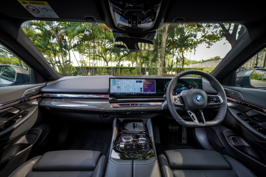 Bên trong khoang lái, BMW i5 CKD ghi nhận sự trở lại của cửa sổ trời toàn cảnh bằng kính, vốn từng bị loại bỏ trong bản nâng cấp tháng 3/2024. Xe sở hữu cụm màn hình cong BMW Curved Display với bảng đồng hồ 12,3 inch, màn hình trung tâm 14,9 inch và màn hình hiển thị kính lái HUD, dải Interaction Bar với đèn viền động, ghế thể thao chỉnh điện có nhớ vị trí và tựa lưng chỉnh điện, điều hòa tự động bốn vùng, sạc không dây, cốp điện dung tích 490 lít.