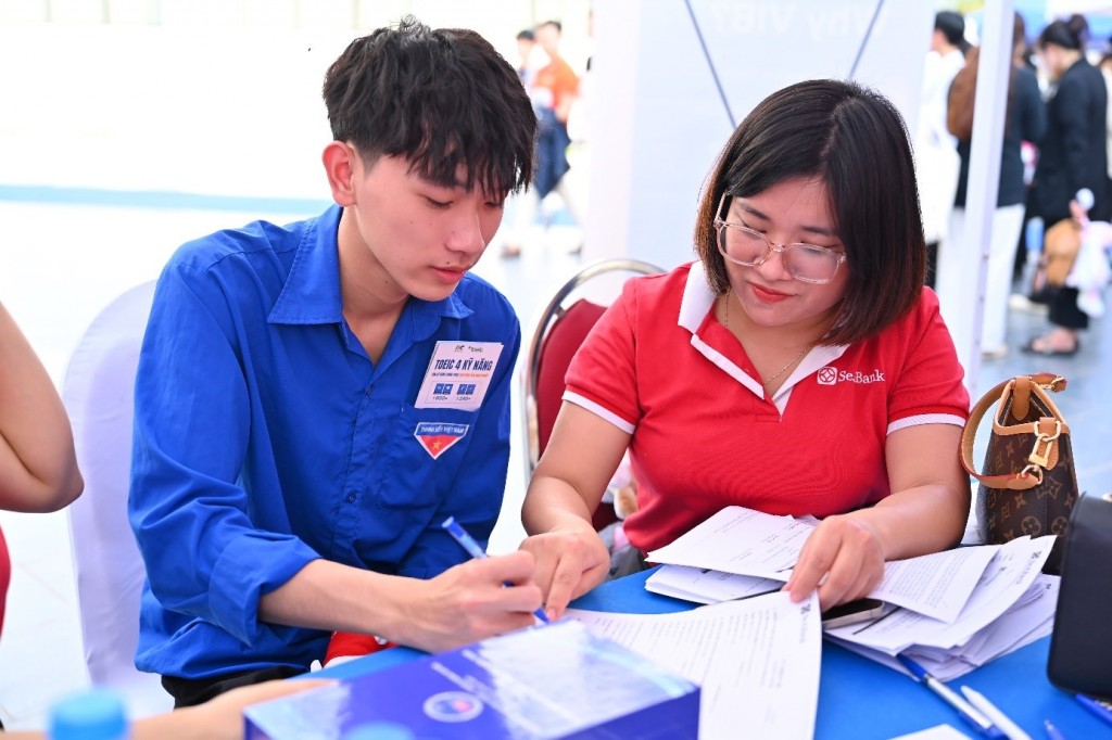 Tại các gian hàng doanh nghiệp, không khí tư vấn diễn ra cởi mở, thân thiện nhưng cũng rất chuyên nghiệp. Các đại diện doanh nghiệp đã tận tình giới thiệu về đơn vị, chia sẻ nhu cầu tuyển dụng, vị trí thực tập - việc làm, yêu cầu kỹ năng, cũng như tư vấn cho sinh viên cách chuẩn bị hành trang nghề nghiệp trong giai đoạn sắp tới.