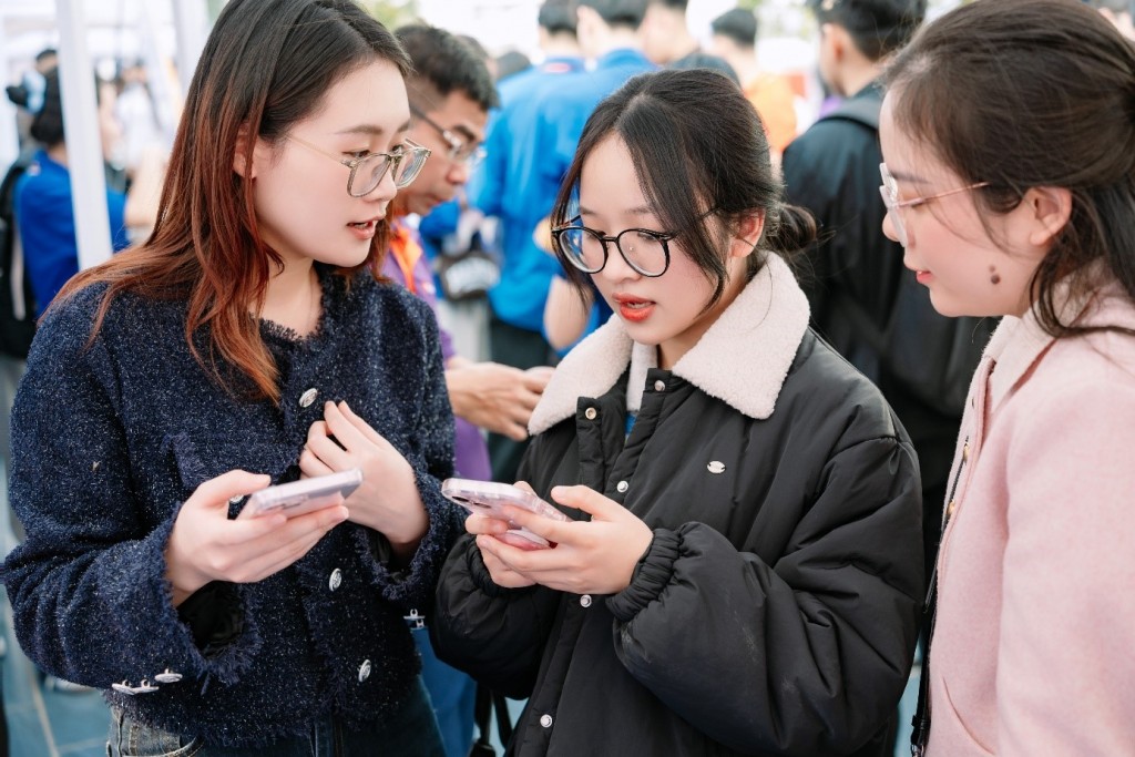 Ngay từ những phút đầu chương trình, khu vực tổ chức Ngày hội đã trở nên nhộn nhịp và sôi động. Sinh viên có mặt từ rất sớm, mang theo hồ sơ, CV, tâm thế chủ động tìm hiểu và sẵn sàng trao đổi trực tiếp với nhà tuyển dụng.