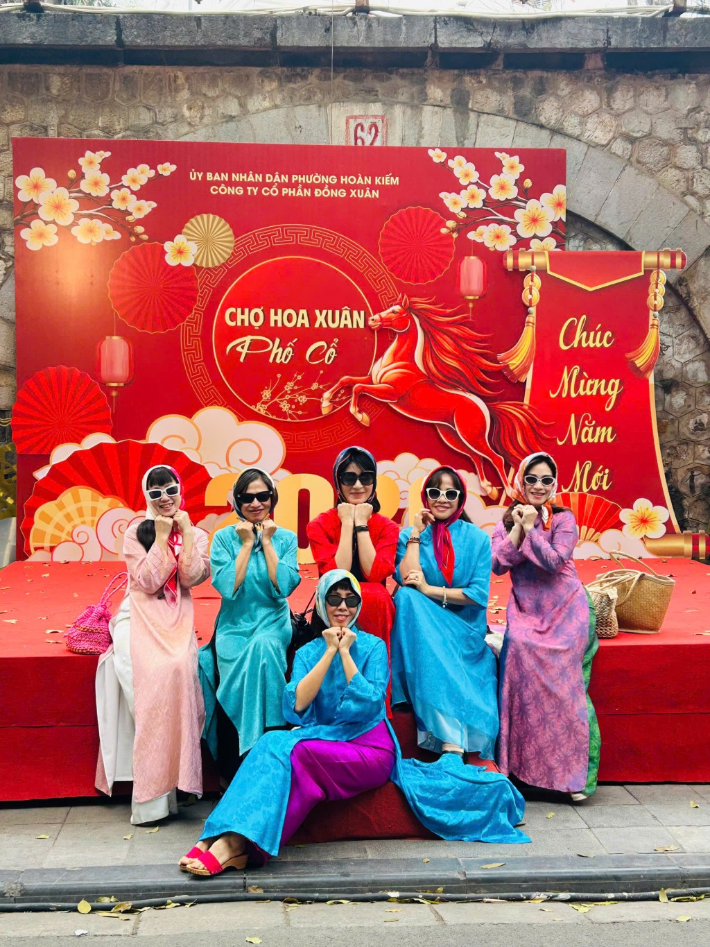 Những ngày giáp Tết, khu vực quanh hồ trở thành một “studio ngoài trời” khổng lồ. Các gia đình, nhóm bạn trẻ, cặp đôi… nô nức diện áo dài, váy áo rực rỡ đến chụp ảnh. Tà áo dài truyền thống tung bay trong gió lạnh, hòa cùng sắc đỏ của câu đối, sắc vàng của cúc, sắc hồng của đào, tạo nên bức tranh xuân đầy sức sống.