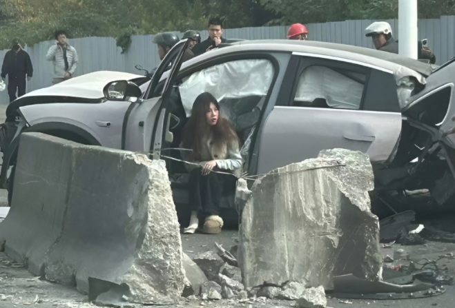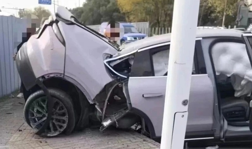 Chiếc Nio EC6 được cho là di chuyển ở tốc độ cao trước khi lao vào một rào chắn bê tông bên đường. Cú va chạm mạnh đã khiến phần đuôi xe tách rời khỏi khoang hành khách. Dù vậy, hai người trên xe chỉ bị thương nhẹ và không gặp nguy hiểm đến tính mạng.