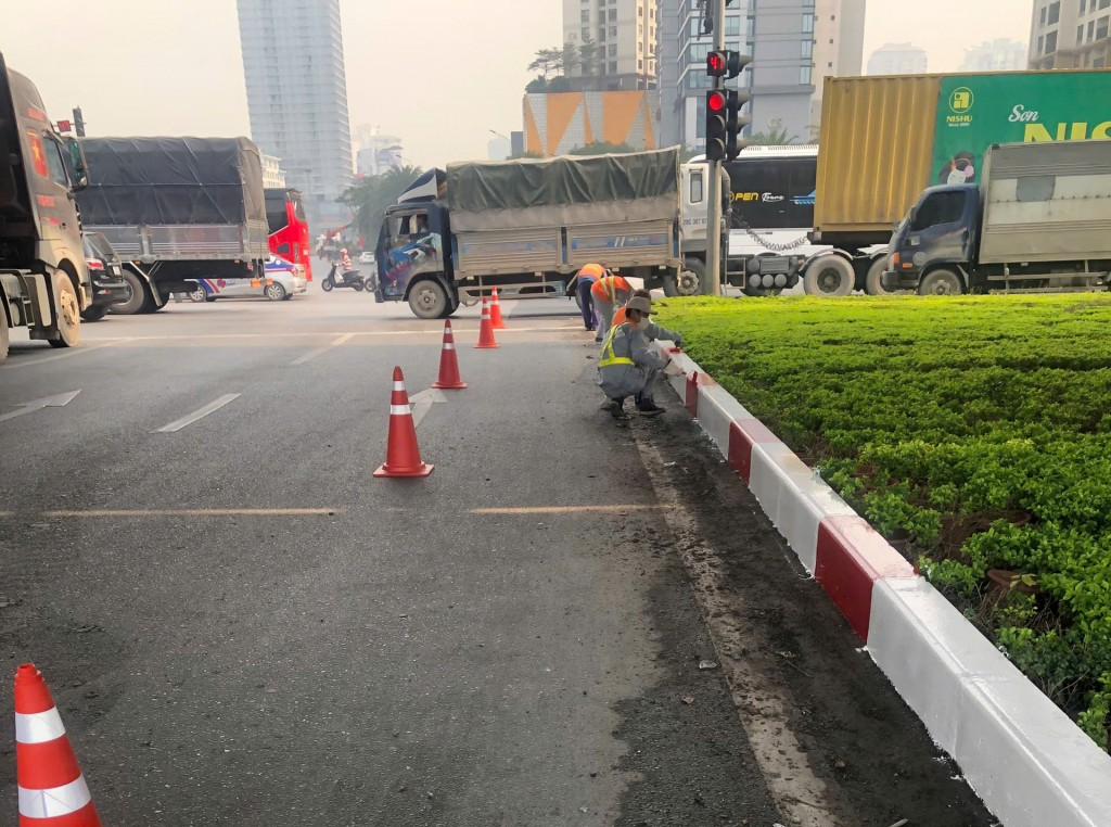 Bên cạnh đó, Ban Duy tu cũng tổ chức sơn kẻ, điều chỉnh tổ chức giao thông tại nhiều tuyến phố lớn như Điện Biên Phủ, Hoàng Diệu, Nguyễn Thái Học, Tôn Đức Thắng, Nguyễn Chí Thanh, Tây Sơn, Đại Cồ Việt, Bạch Mai…; đồng thời sơn chỉnh trang cột, mặt sau biển báo, vệ sinh biển phản quang, rửa trụ và hàng rào dải phân cách nhằm bảo đảm mỹ quan đô thị.