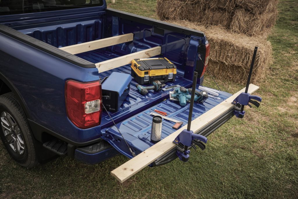 Cửa thùng xe có thể được tận dụng như một bàn làm việc kỹ thuật di động với 2 hốc dùng để gắn ngàm kẹp ê-tô giúp cố định vật liệu (như gỗ) khi cắt hay cần giữ chặt. Một trang bị khác cũng đem đến tính linh hoạt khi sử dụng là hàng ghế sau có thể gập phẳng, tạo thêm không gian chứa và sắp xếp hàng hóa đồ dùng thuận tiện.