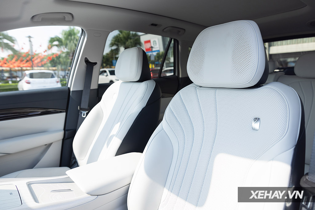 Bước vào bên trong xe là một khoang cabin thực sự rộng rãi và rất sáng sủa nhờ tone da bọc ghế màu trắng ngà. Cửa sổ trời toàn cảnh kích cỡ cực lớn tạo không khí thoáng đãng cho cả hai hàng ghế. Các bề mặt táp-lô, táp-pi hay yên ngựa trung tâm đều được phủ vật liệu mềm và trang hoàng bằng những dải đèn viền rực rỡ; đem lại trải nghiệm tương đương những mẫu xe cao cấp có mức giá vượt tầm tiền tỉ.