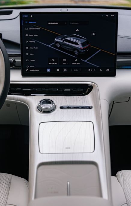 Khoang cabin của Geely EX5 được thiết kế hiện đại với ghế lái chỉnh điện 6 hướng, hàng ghế trước có sưởi và làm mát, vô lăng bọc da, cụm đồng hồ kỹ thuật số 10,2 inch và màn hình cảm ứng trung tâm 15,4 inch hỗ trợ Apple CarPlay, Android Auto, Bluetooth. Điều hòa tự động tích hợp tính năng lọc không khí và vi khuẩn, sạc không dây, điều khiển giọng nói hai vùng cũng là trang bị tiêu chuẩn.
