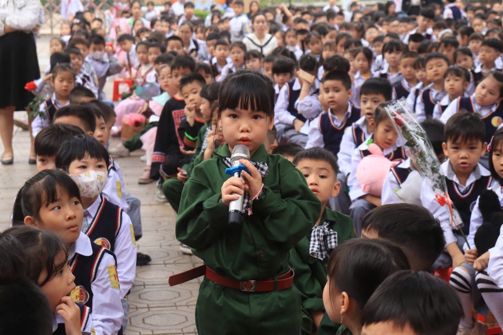 Mở đầu chương trình là nghi thức chào cờ trang nghiêm và các tiết mục văn nghệ do chính các em học sinh biểu diễn. Những giai điệu, điệu múa ca ngợi Tổ quốc, người lính và truyền thống anh hùng của dân tộc đã tạo nên không khí vừa trang trọng, vừa gần gũi, phù hợp với lứa tuổi học trò.