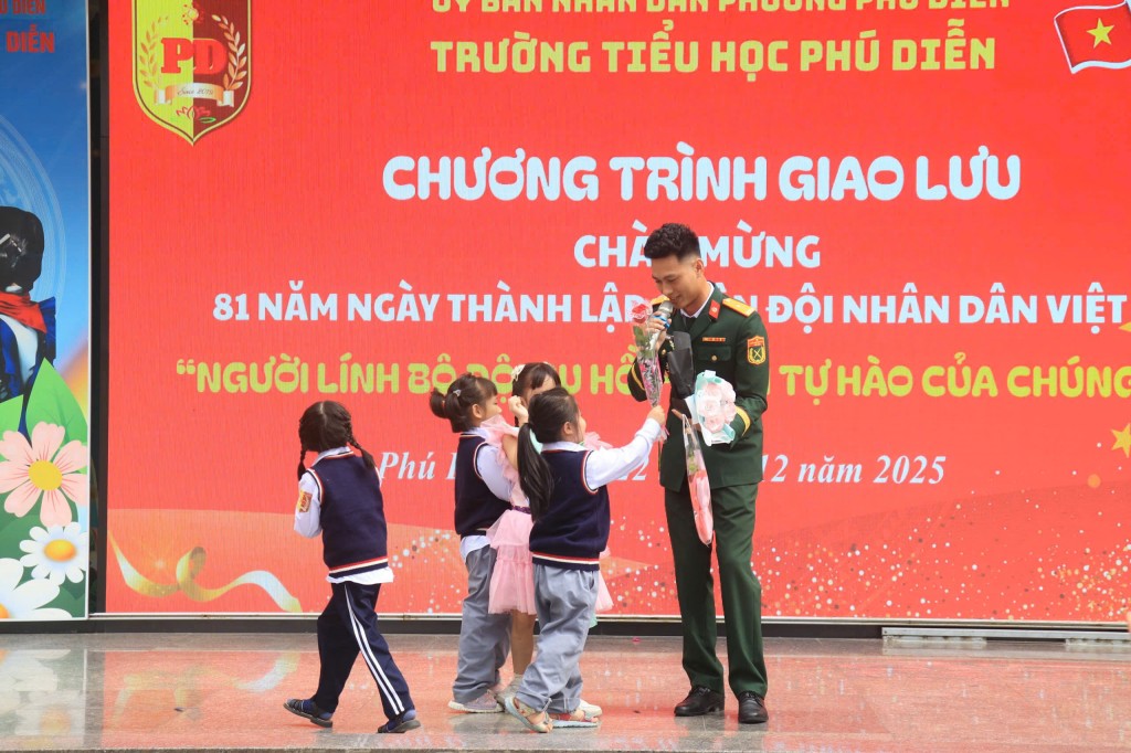 Xúc động trước những câu chuyện được nghe, đại diện học sinh Trường Tiểu học Phú Diễn đã bày tỏ lòng biết ơn sâu sắc tới các chú bộ đội, đồng thời hứa sẽ chăm ngoan, học giỏi, rèn luyện tốt để xứng đáng với sự hy sinh của các thế hệ cha anh.