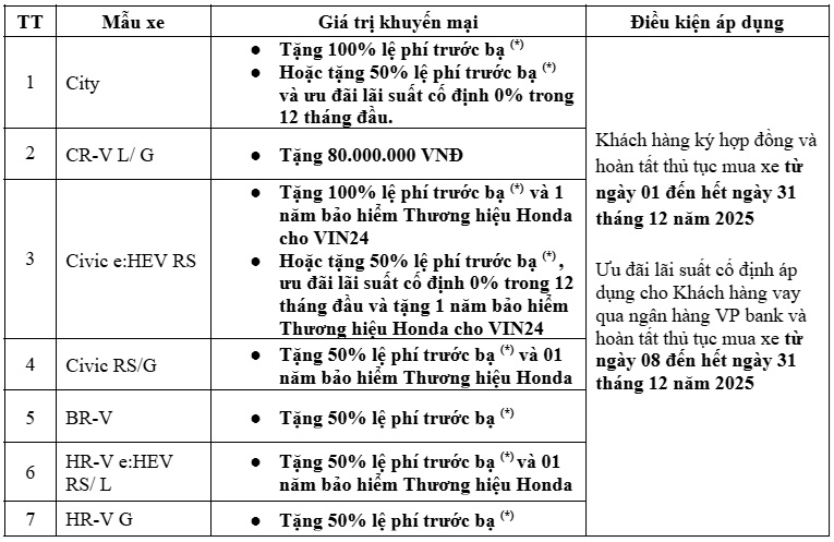 Honda ưu đãi đến 80 triệu đồng cho khách mua xe trong tháng 12/2025