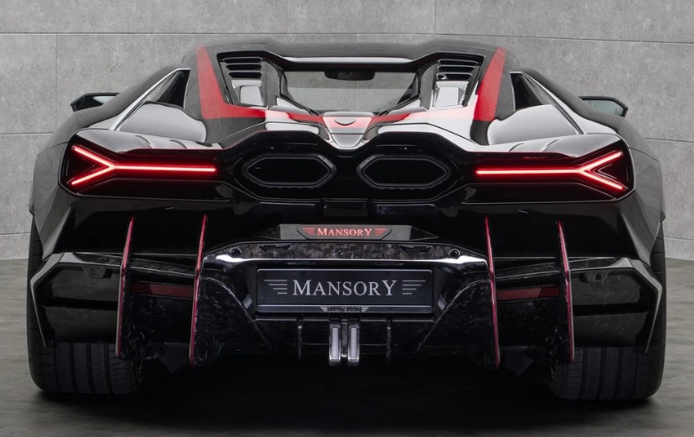 Ở bản dành cho Esteban Ocon, ngoại hình xe gây ấn tượng mạnh với phối màu đỏ - đen theo hiệu ứng Ombré, đòi hỏi kỹ thuật sơn phức tạp và tay nghề cao. Logo Mansory phát sáng được đặt nổi bật trên nắp capo, cùng thiết kế khí động học nhiều đường cắt xẻ, mang đến diện mạo sắc sảo và hầm hố hơn bản gốc.