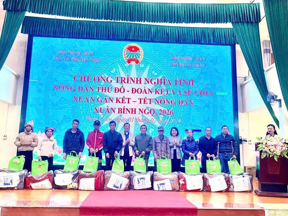 Theo đó, trong 3 ngày (30 - 31/1 và 1/2), Hội Nông dân thành phố Hà Nội đã phối hợp với các địa phương tổ chức Chương trình “Nghĩa tình Nông dân Thủ đô - Đoàn kết và sẻ chia”, “Xuân gắn kết - Tết nông dân” cho các hội viên nông dân có hoàn cảnh khó khăn tại tỉnh Lai Châu trong dịp Tết Nguyên đán Bính Ngọ năm 2026 tại các xã: Phong Thổ, Bình Lư, Than Uyên.