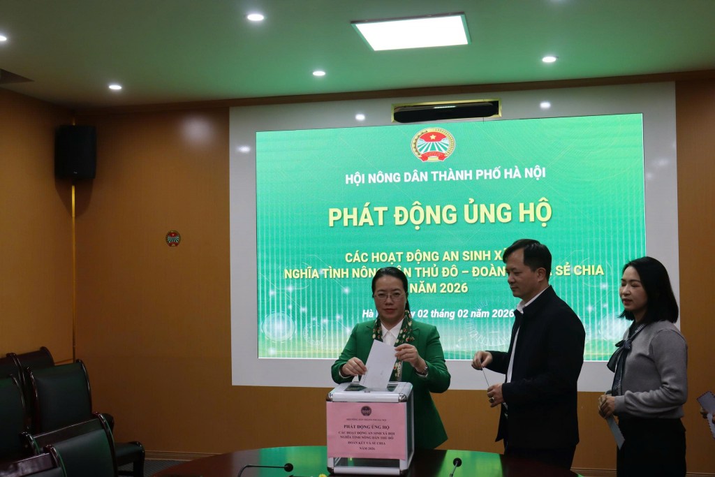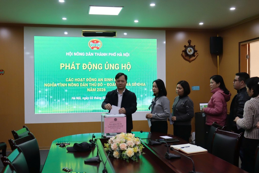 Cũng trong chiều 2/2, tại trụ sở Hội Nông dân thành phố, Thường trực Hội Nông dân thành phố tổ chức phát động ủng hộ các hoạt động an sinh xã hội, nghĩa tình nông dân Thủ đô - Đoàn kết và sẻ chia năm 2026 trong cán bộ, công chức, người lao động Ban Công tác Nông dân và cán bộ, hội viên nông dân Thủ đô.