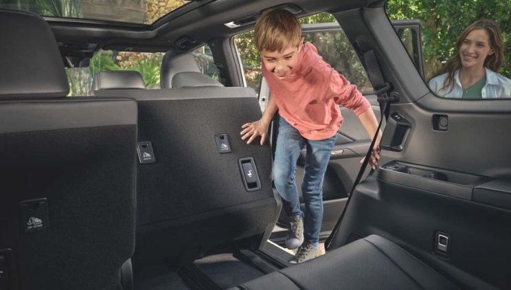 Lexus TX 2024 sở hữu dung tích khoang hành lý tiêu chuẩn 569 lít và sẽ tăng lên 2.747 lít khi gập hàng ghế thứ hai và thứ 3 xuống.