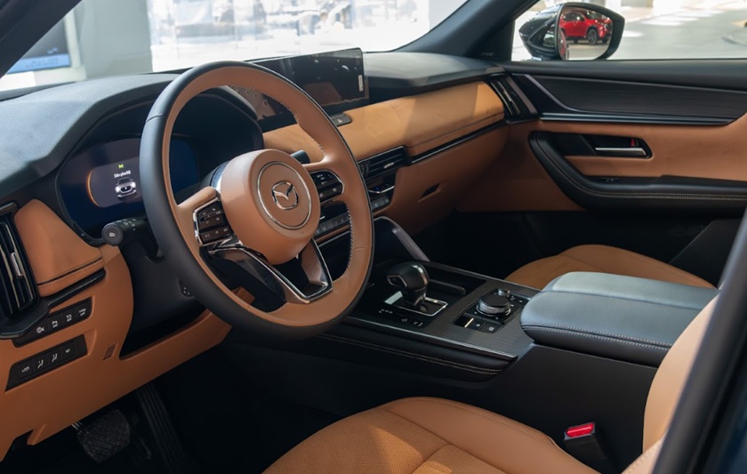 Bên trong khoang lái, CX-60 thể hiện rõ định hướng cận sang với phong cách thiết kế cao cấp hơn các mẫu SUV Mazda hiện tại. Xe áp dụng triết lý Human Centric, tập trung tối ưu tư thế ngồi, tầm quan sát và cách bố trí các khu vực điều khiển, giúp người lái thao tác trực quan và thoải mái hơn.