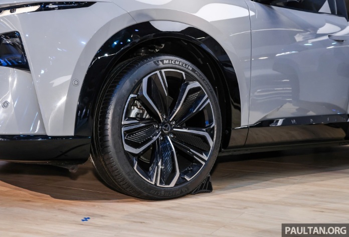 Đặc biệt, CX-6e vẫn giữ lại gương chiếu hậu điện tử từ bản concept, kết hợp cùng tay nắm cửa dạng ẩn để tăng tính khí động học. Mâm xe có nhiều tùy chọn, kích thước từ 19 đến 21 inch, tùy từng phiên bản.