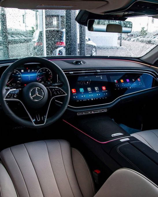 Lần lộ diện tại Hà Nội trước đây đã hé lộ khoang cabin của E-Class 2025. Xe được trang bị ghế bọc da chỉnh điện, tích hợp tính năng sưởi và làm mát. Bảng điều khiển trung tâm nổi bật với hệ thống màn hình kỹ thuật số.