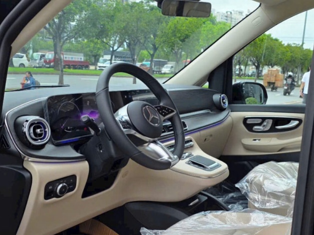 Khoang nội thất của V-Class 2025 vẫn tiếp tục thể hiện rõ đẳng cấp của một chiếc MPV hạng sang. Ngay cả bản V 300 Avantgarde tiêu chuẩn cũng được trang bị gần tương đương bản AMG cao cấp, với: cặp màn hình 12,3 inch hỗ trợ hệ thống giải trí MBUX mới nhất có kết nối Apple CarPlay/Android Auto không dây; vô-lăng 3 chấu thiết kế mới, điều hòa tự động 2 vùng, kính cách nhiệt; hàng ghế trước chỉnh điện, nhớ vị trí, tích hợp sưởi và đèn nội thất 64 màu.