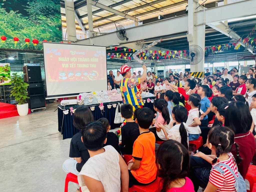 Ngay từ đầu tháng 9, tại các nhà máy và khuôn viên công ty, không khí chuẩn bị cho ngày hội đã rộn ràng. Cờ, đèn lồng, mô hình mâm cỗ và những chiếc bánh Trung thu được bày biện khắp nơi, gợi nhắc đến hình ảnh thân thuộc của Tết thiếu nhi Việt Nam truyền thống.