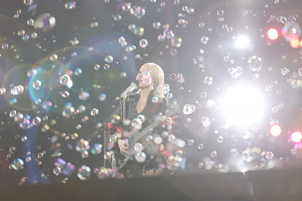 Cô cũng thể hiện mình là nghệ sĩ đa năng khi có thể vừa hát vừa nhảy, vừa mua ballet hoặc chơi đàn. Khi gặp sự cố mất tín hiệu "in ear", nữ ca sĩ vẫn thể hiện sự bản lĩnh, không mất bình tĩnh trên sân khấu có hàng chục ngàn người theo dõi.