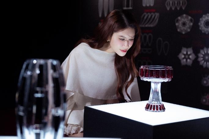 Đặc biệt, đèn chùm Printemps Bleu – một trong chỉ 60 phiên bản trên toàn thế giới – trở thành tâm điểm không thể bỏ qua tại triển lãm. Tác phẩm được nhà thiết kế quốc tế Steve Leung sáng tạo cùng nghệ nhân Baccarat, kết hợp giữa pha lê trong suốt với chao đèn bằng sứ Limoges vẽ họa tiết Thanh Hoa. Khi ánh sáng lan tỏa, những cánh hoa xanh lam khẽ chuyển mình, phản chiếu trong pha lê lấp lánh, tạo nên vũ điệu ánh sáng vừa đương đại, vừa mang vẻ đẹp vĩnh cửu.