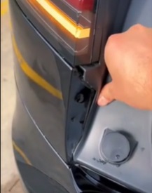 Qua video có thể thấy, phần viền cao su xung quanh cửa xe Tesla vừa kéo nhẹ đã có hiện tượng bong ra. Phần nhựa gần đèn hậu xe Tesla cũng ọp ẹp, có hiện tượng nứt vỡ.