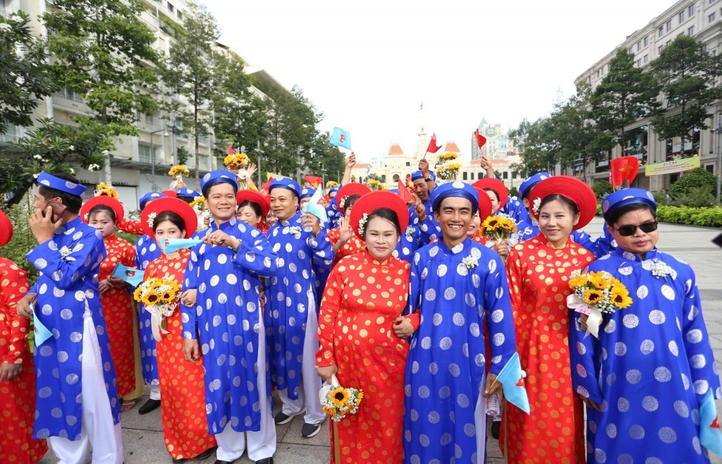 TTTĐ - Ngày 24/10, Thành đoàn cùng Trung tâm Hỗ trợ thanh niên công nhân TP Hồ Chí Minh đã tổ chức đám cưới tập thể cho 50 cặp đôi công nhân, lao động trẻ.
