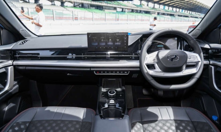 Khoang cabin của QV-E được thiết kế đơn giản, tập trung vào tính an toàn và công năng. Xe sở hữu hai màn hình 10,25 inch (đồng hồ và giải trí trung tâm), bảng điều khiển nổi và hệ thống đèn viền nội thất. Tuy nhiên, các chi tiết trang trí chủ yếu dùng nhựa và vật liệu giả kim loại, cho cảm giác thiên về tiết kiệm chi phí.