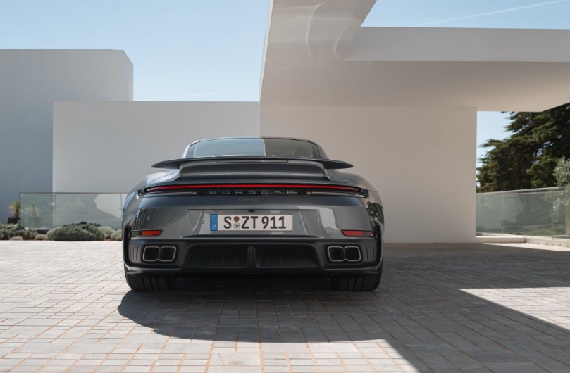 Mẫu xe đầu bảng của dòng xe 911 hiện tại mang thiết kế Turbo tiêu biểu, sở hữu chiều rộng thân xe và khoảng cách giữa các bánh xe lớn hơn, đồng thời bổ sung các hốc hút gió ở phần hông sau, nhấn mạnh sự khác biệt một cách rõ nét so với các mẫu Carrera. Phần đuôi xe được cải tiến với hốc gió hai bên làm nổi bật chiều ngang bề thế. Hệ thống ống xả titan với ngôn ngữ thiết kế điển hình của Turbo cùng bề mặt hiệu ứng ngọc trai sống động trên dải đèn hậu cũng khẳng định vị thế dẫn đầu của Turbo S so với các dòng xe 911 khác. Ốp ống xả titan hình oval với cấu trúc đặc biệt cũng được cung cấp dưới dạng tùy chọn. Về tổng thể, diện mạo độc bản chính là yếu tố tạo nên sự khác biệt rõ rệt của Turbo S so với các dòng xe 911 từng ra mắt.