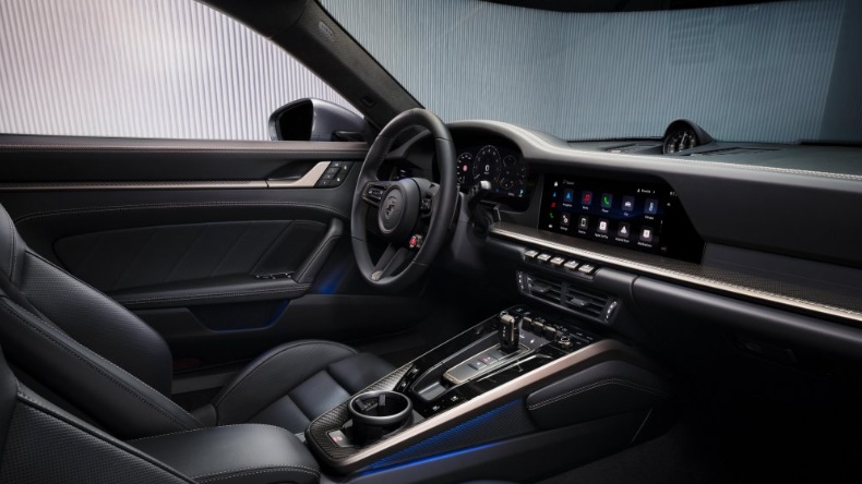 Đối với phiên bản coupé, 911 Turbo S trang bị hai chỗ ngồi tiêu chuẩn. Cấu hình hàng ghế sau có thể được lựa chọn miễn phí tùy theo yêu cầu. Phiên bản Cabriolet được mặc định cung cấp cấu hình 2+2. Porsche trang bị tiêu chuẩn cho 911 Turbo S mới hệ thống đèn pha LED Matrix HD, với công nghệ chiếu sáng tiên tiến, tăng cường độ an toàn khi lái xe vào ban đêm. Gói Sport Chrono bao gồm đồng hồ đo nhiệt độ lốp, hệ thống treo PASM được tinh chỉnh đặc biệt, hệ thống Kiểm soát Khung gầm chủ động (PDCC) của Porsche với công nghệ cân bằng điện-thủy lực và hệ thống xả thể thao bằng titan cũng thuộc trang bị tiêu chuẩn. Nội thất xe được trang bị ghế thể thao chỉnh điện 18 hướng với chức năng ghi nhớ vị trí ghế và dòng chữ "Turbo S" thêu nổi trên phần tựa đầu. Họa tiết dập nổi đặc trưng của Turbo S trên bề mặt ghế và ốp cửa tái hiện các đường nét thiết kế của chiếc 911 Turbo 930 đầu tiên. Ghế đơn thể thao siêu nhẹ kiểu gập, vốn đã quen thuộc trên mẫu 911 GT3, cũng là tùy chọn cho phiên bản coupé.