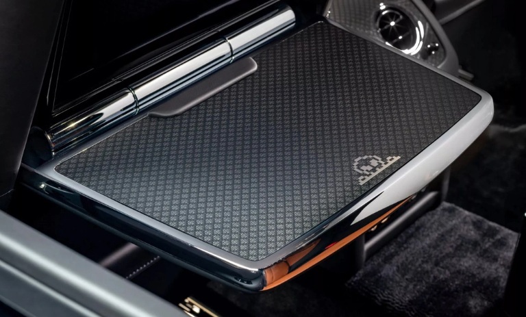 Ở hàng ghế sau, phần ốp tủ lạnh được vẽ thủ công cảnh giao chiến trên mặt trăng, với hai đĩa bay bằng thép không gỉ đặt nổi trên nền bầu trời sao được xử lý bằng kỹ thuật phun sơn nhiều lớp.