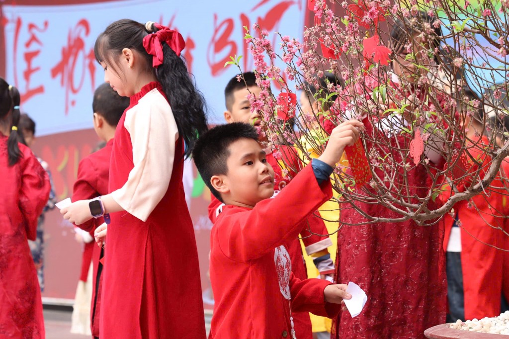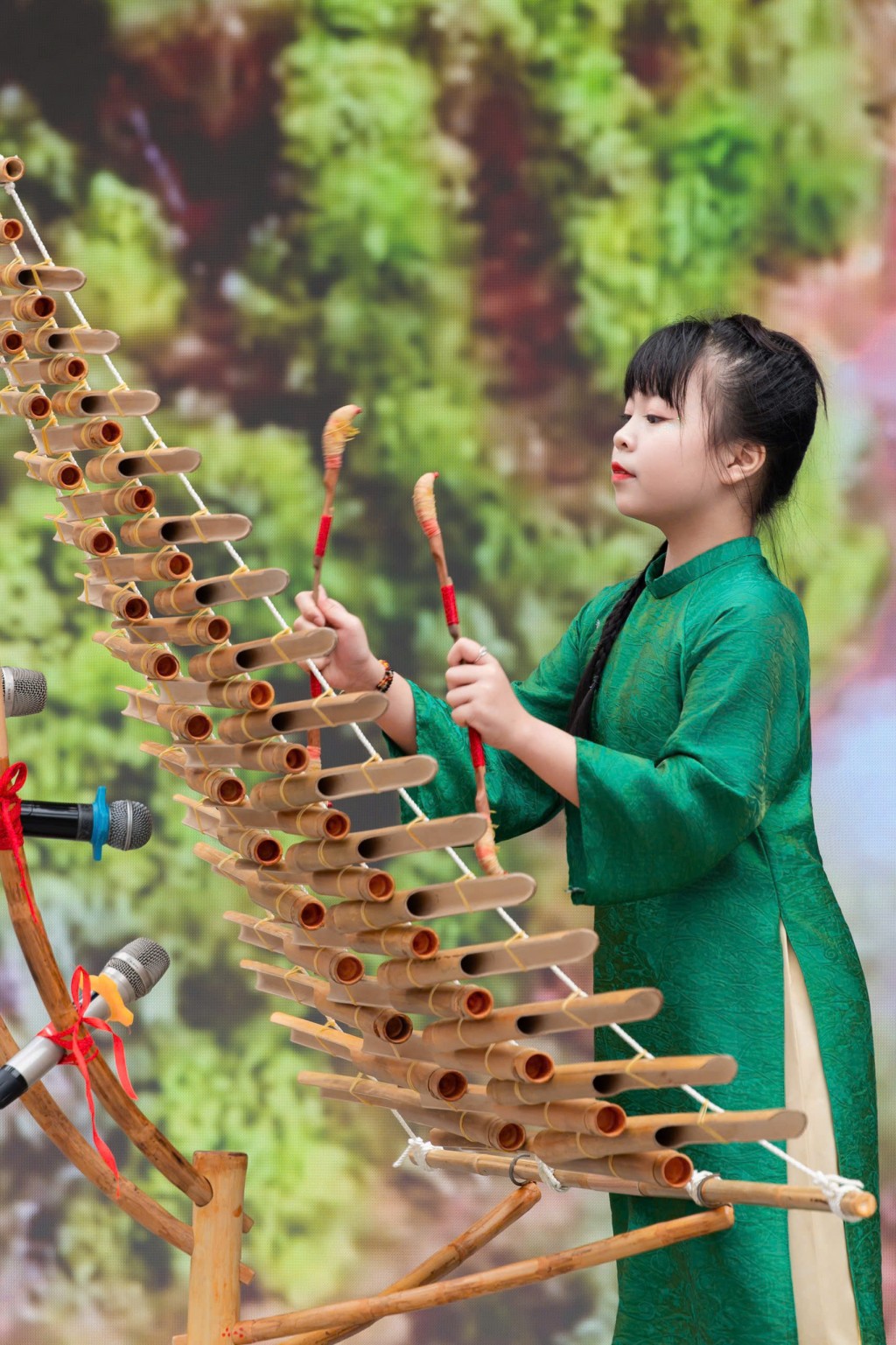 Tiếp đó là tiếng đàn T’rưng du dương do em An Nhiên thể hiện, gợi nên âm hưởng núi rừng Tây Nguyên giữa sân trường. Khép lại phần biểu diễn là tiết mục tốp hát và múa chủ đề mùa xuân đến từ các em học sinh, như lời chúc năm mới an lành gửi tới toàn thể thầy trò.