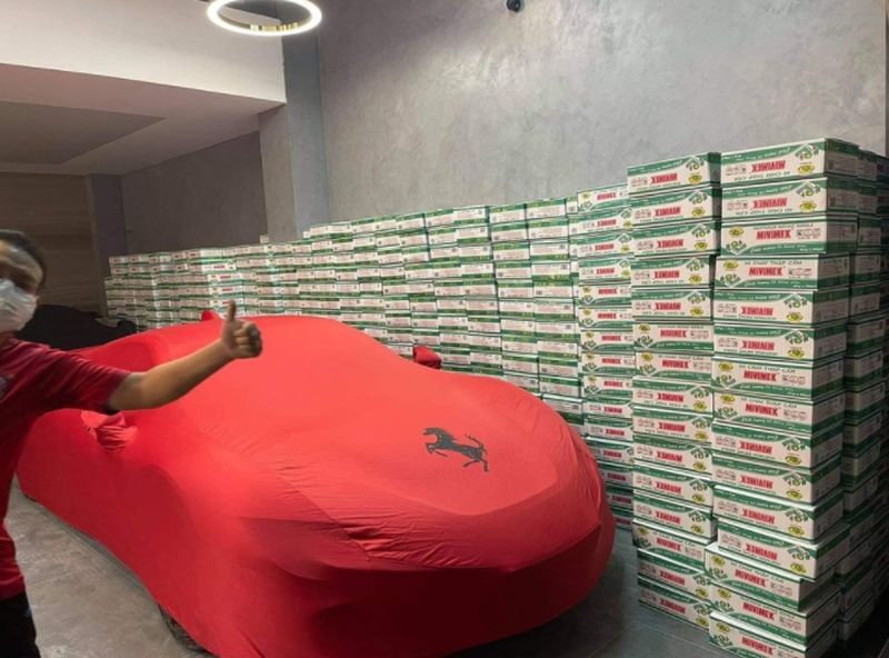 Đến cả siêu phẩm như Ferrari SF90 Stradale, Bentley Flying Spur V8 First Edition và McLaren 765LT của nhà hảo tâm này cũng phải nằm chung với hàng hóa nhu yếu phẩm để cứu trợ người dân mùa Covid.