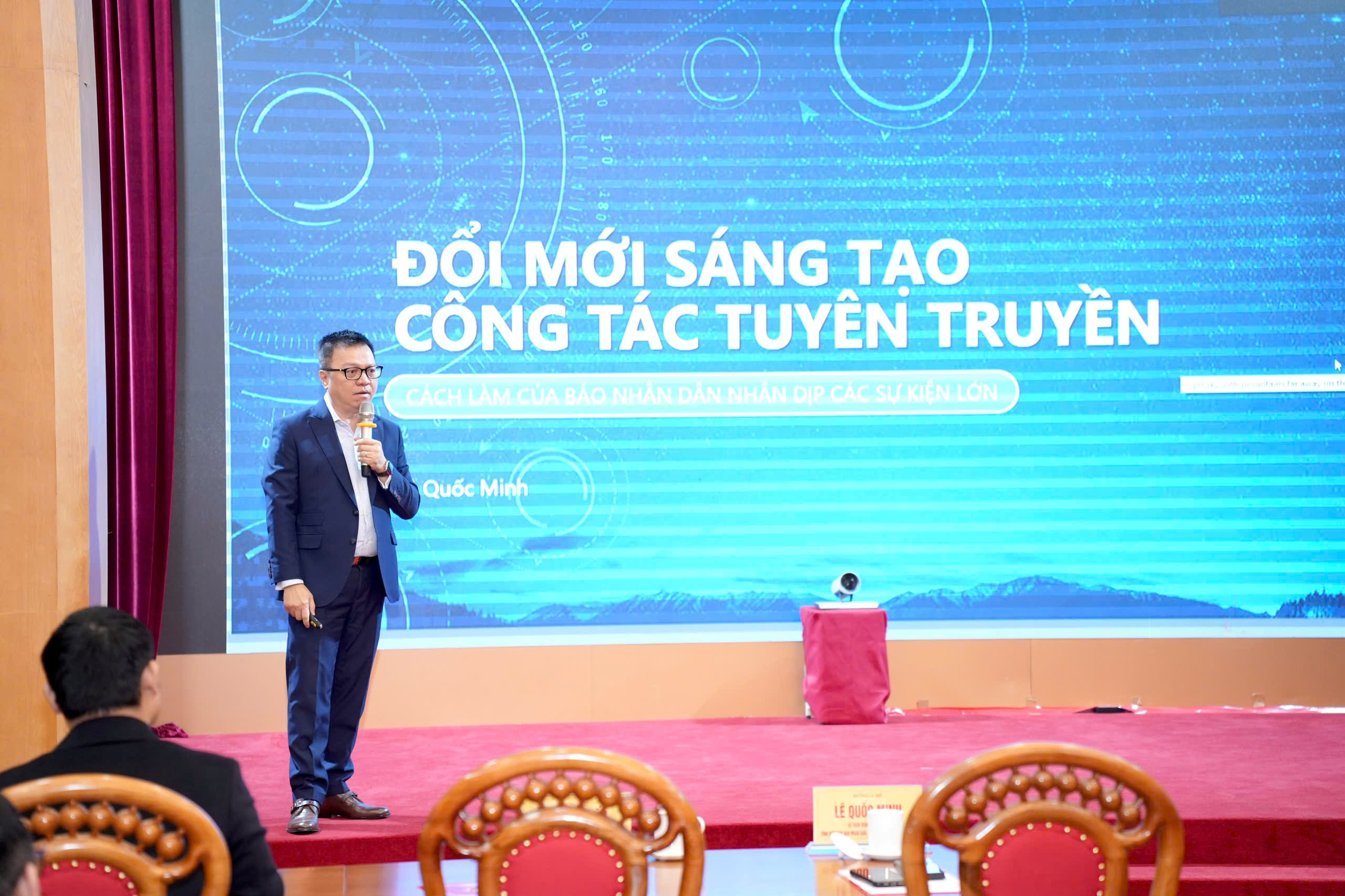 Cũng tại Hội nghị, Ủy viên Trung ương Đảng, Tổng Biên tập Báo Nhân Dân, Chủ tịch Hội Nhà báo Việt Nam Lê Quốc Minh đã trình bày chuyên đề về đổi mới nội dung, phương thức tuyên truyền Đại hội XIV của Đảng. Chuyên đề nhấn mạnh yêu cầu đổi mới mạnh mẽ, toàn diện công tác thông tin, tuyên truyền theo hướng hiện đại, chuyên nghiệp, nhân văn và thuyết phục; phát huy hiệu quả của các nền tảng truyền thông số, đa phương tiện; đồng thời bảo đảm tính chính xác, kịp thời, thống nhất, đúng định hướng.