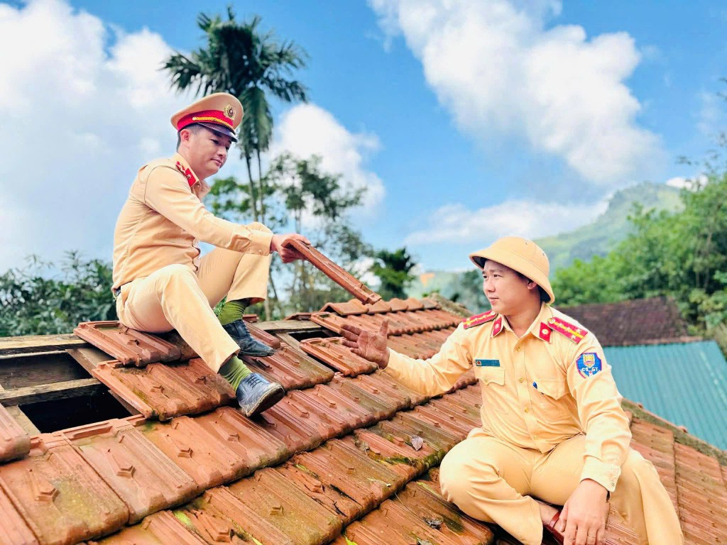 | Lực lượng Công an các đơn vị, địa phương tỉnh Quảng Ngãi khẩn trương sửa chữa nhà cho người dân trên địa bàn |