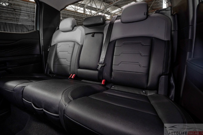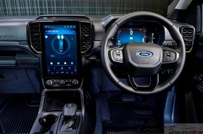 Về nội thất, khoang cabin của xe được trang bị ghế da đục lỗ chỉnh điện 8 hướng, điều hòa tự động hai vùng, màn hình cảm ứng trung tâm 12 inch tích hợp SYNC 4, hỗ trợ Apple CarPlay và Android Auto không dây, âm thanh 6 loa và cần số điện tử e-Shifter. Xe có thêm ổ cắm AC 230V 400W và cửa gió điều hòa cho hàng ghế sau.