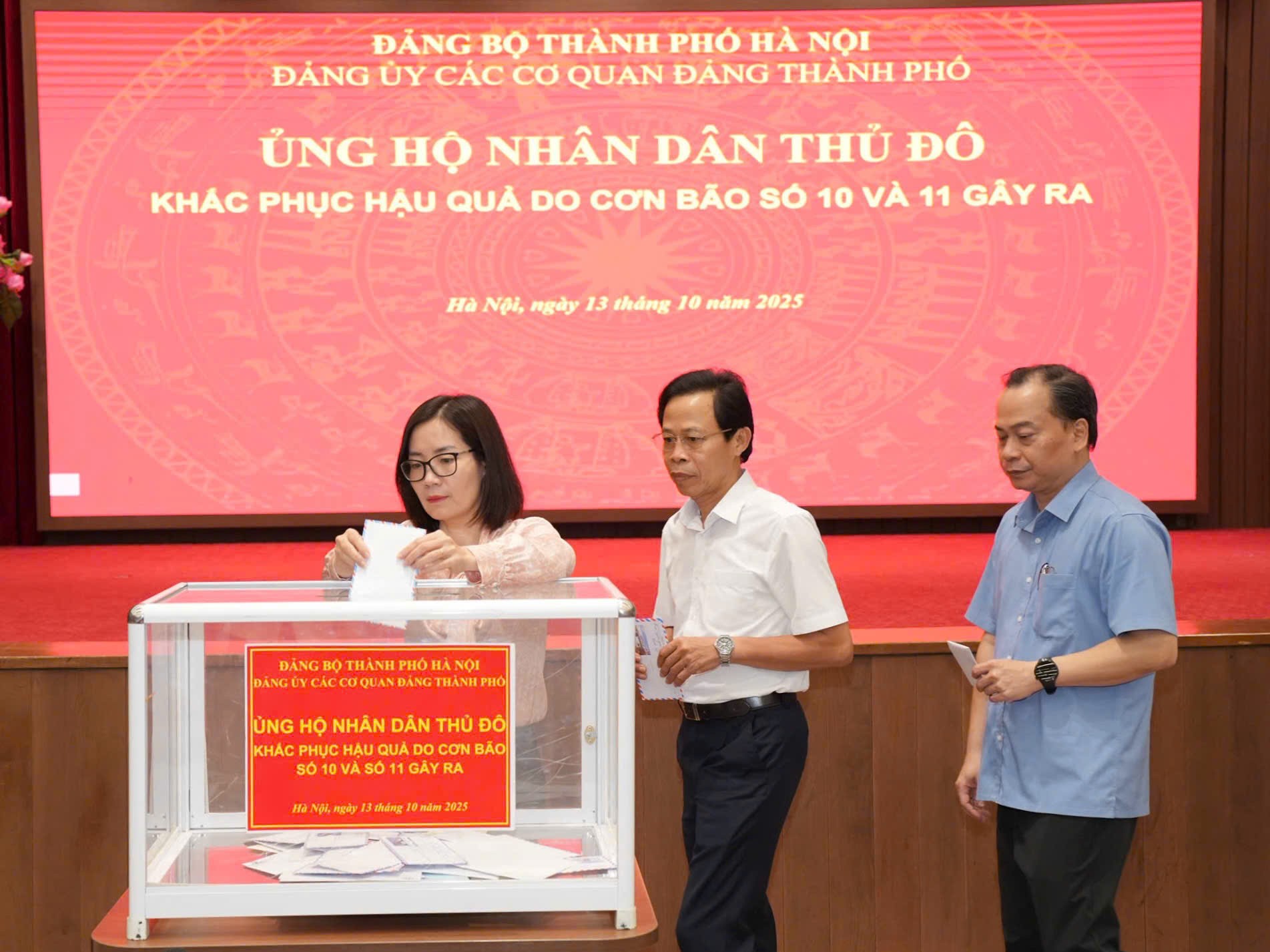 Cán bộ, công chức, viên chức, người lao động Đảng ủy các Cơ quan Đảng thành phố Hà Nội tham gia ủng hộ Nhân dân Thủ đô khắc phục hậu quả do cơn bão số 10 và số 11 gây ra |