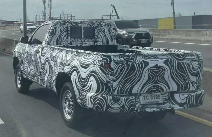 Chiếc Toyota Hilux 2026 thử nghiệm dù được che chắn kĩ lưỡng nhưng vẫn có thể nhận ra một số chi tiết thiết kế mới.
