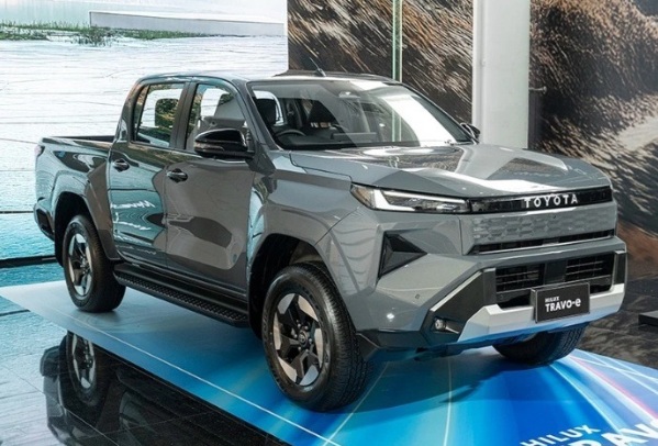 Bên cạnh các phiên bản động cơ đốt trong, Toyota cũng giới thiệu Hilux Travo-e – biến thể thuần điện đầu tiên của dòng bán tải này. Xe được trang bị hai mô-tơ điện đặt ở cầu trước và sau, cho tổng công suất 196 mã lực, kết hợp pin lithium-ion dung lượng 59,2 kWh. Hilux Travo-e hỗ trợ sạc AC tối đa 11 kW và sạc nhanh DC lên tới 125 kW, với phạm vi hoạt động khoảng 315 km theo chuẩn NEDC.