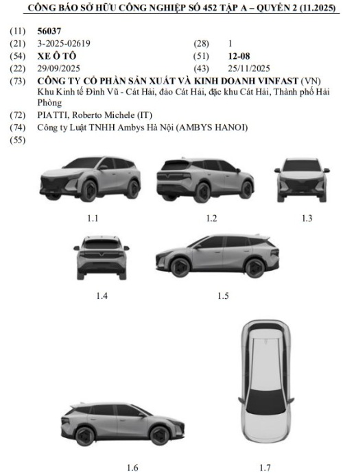 Điểm khác biệt so với các mẫu VinFast hiện tại là chi tiết “cánh chim” quen thuộc không xuất hiện trong bản vẽ đăng ký. Tuy nhiên, đây chỉ là bản quyền kiểu dáng, nên các chi tiết vẫn có thể thay đổi khi bước lên phiên bản thương mại.