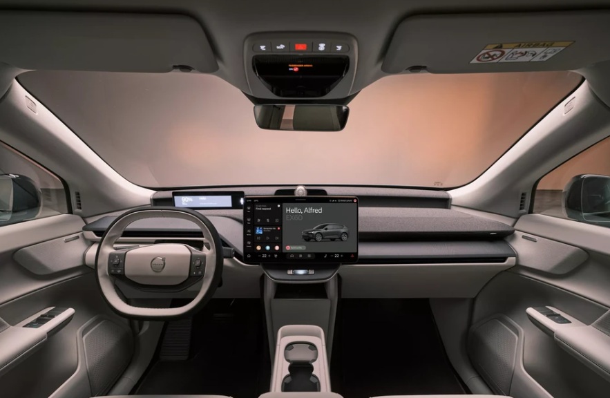 Không gian bên trong EX60 là sự kết hợp giữa triết lý tối giản Bắc Âu và công nghệ số hóa đỉnh cao. Nhờ trục cơ sở dài và sàn phẳng, xe sở hữu khoang hành lý lớn cùng chỗ để chân rộng rãi. Hệ thống giải trí ghi điểm tuyệt đối với dàn âm thanh Bowers & Wilkins 28 loa tích hợp Dolby Atmos. Đáng chú ý, EX60 là một trong những mẫu xe đầu tiên trang bị trợ lý ảo AI có khả năng giao tiếp tự nhiên như con người, vận hành dựa trên nền tảng Google Gemini AI và hệ điều hành Android Automotive OS.