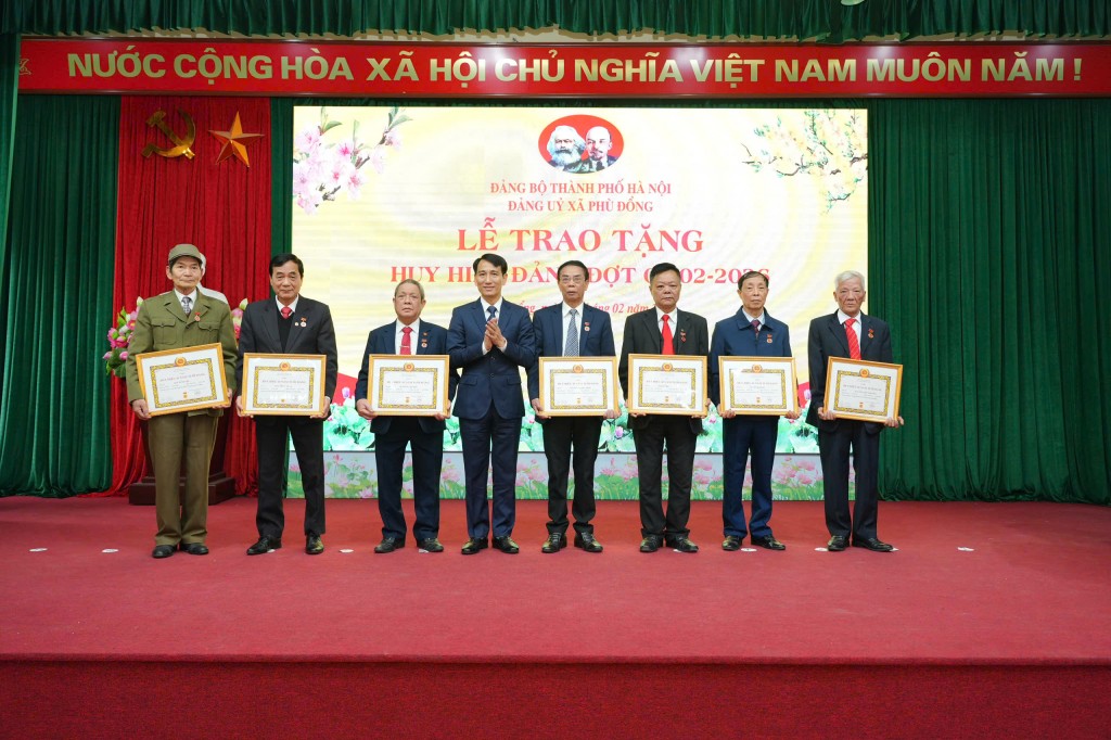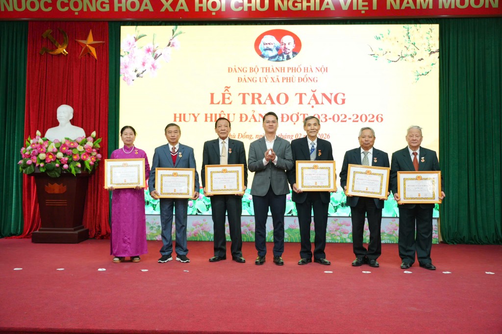 Đợt này, Đảng bộ xã Phù Đổng có 77 đảng viên vinh dự được nhận Huy hiệu Đảng, trong đó có 1 đồng chí được tặng Huy hiệu 70 năm tuổi Đảng, 2 đồng chí nhận Huy hiệu 65 năm tuổi Đảng, 11 đồng chí nhận Huy hiệu 60 năm tuổi Đảng...