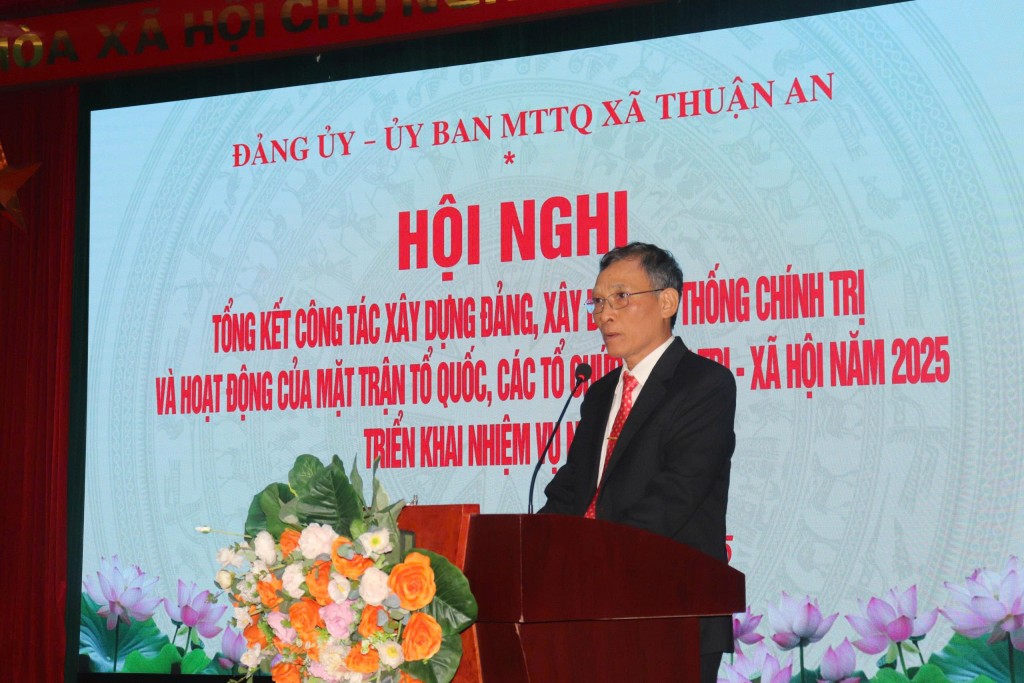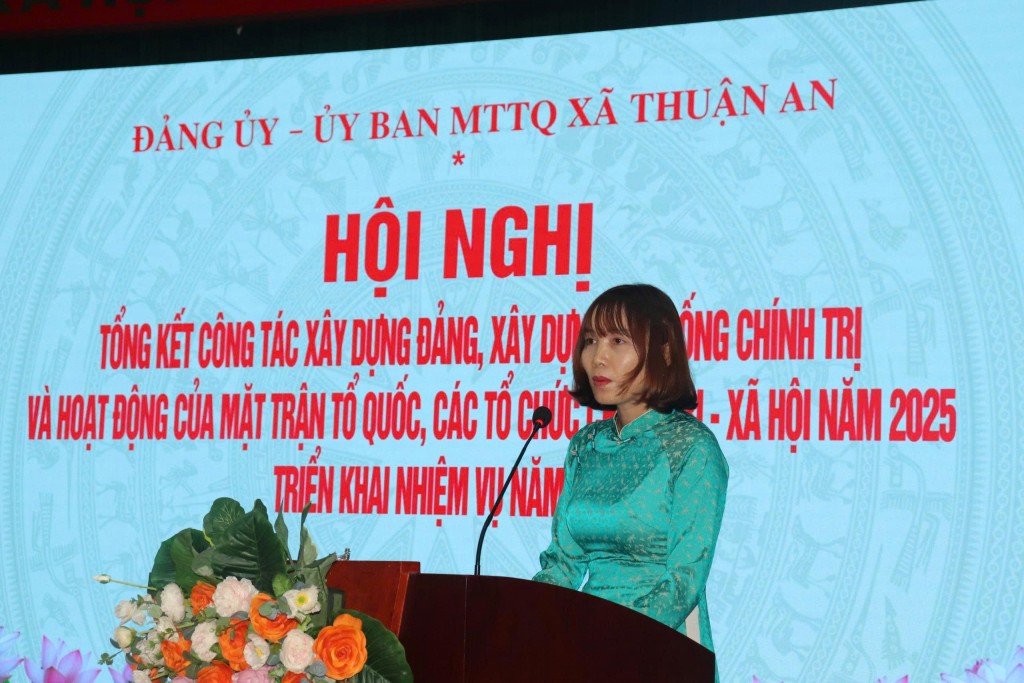 Với tinh thần chủ động, sáng tạo và quyết tâm chính trị cao, Đảng uỷ, Uỷ ban MTTQ và các tổ chức chính trị xã hội xã Thuận An đã tập trung lãnh đạo, chỉ đạo, tổ chức thực hiện đồng bộ, hiệu quả các chương trình, kế hoạch công tác. Qua đánh giá, xã hoàn thành 8/8 chỉ tiêu công tác xây đảng, xây dựng hệ thống chính trị; 12/12 chỉ tiêu kinh tế - xã hội.