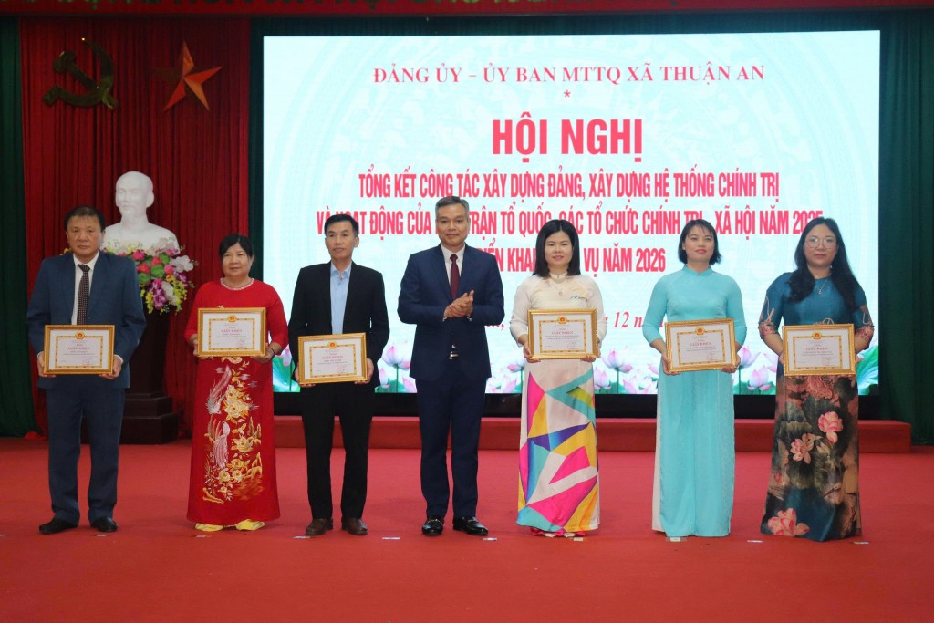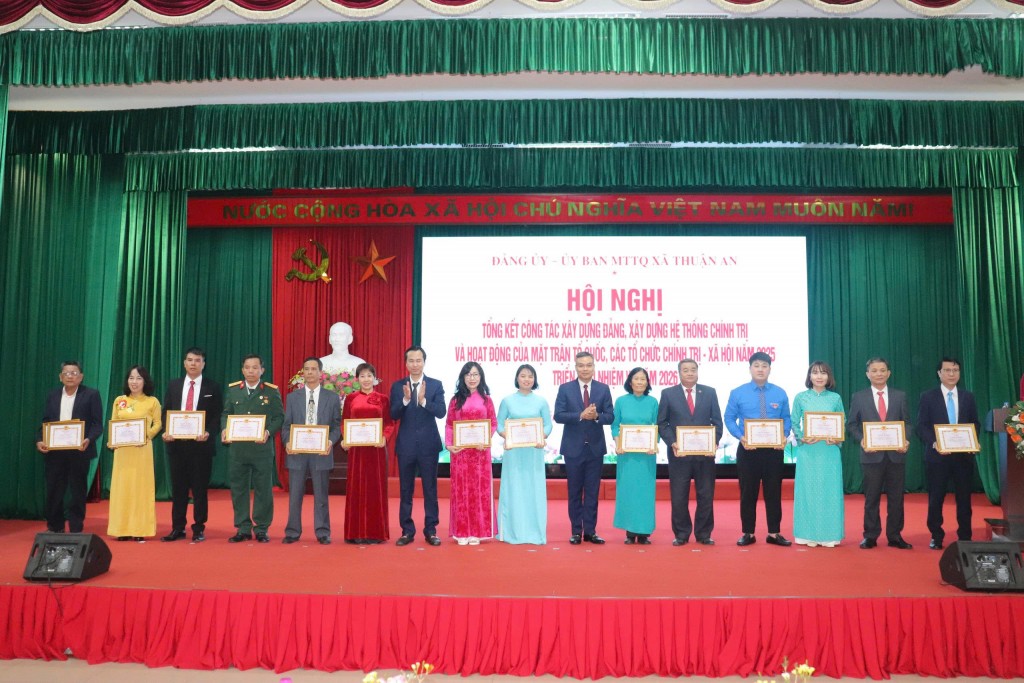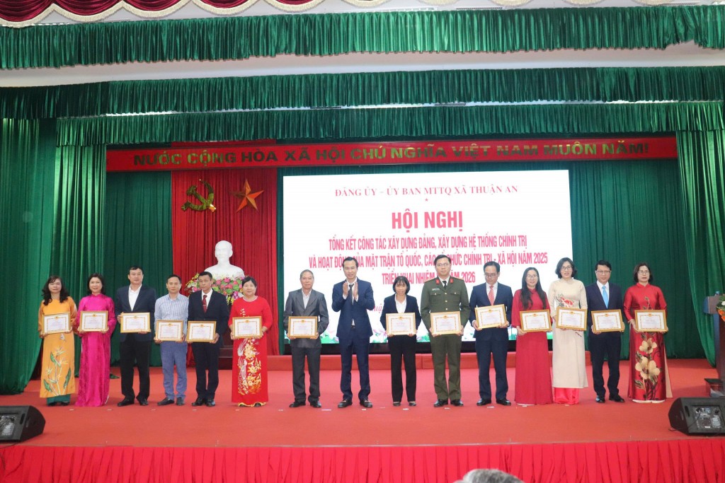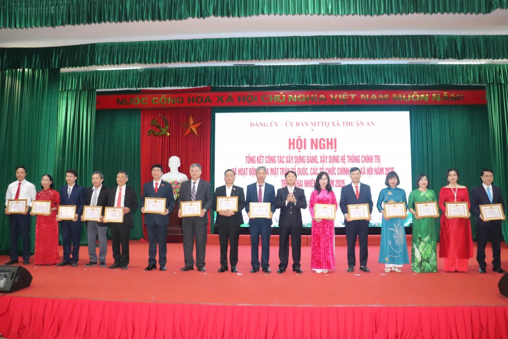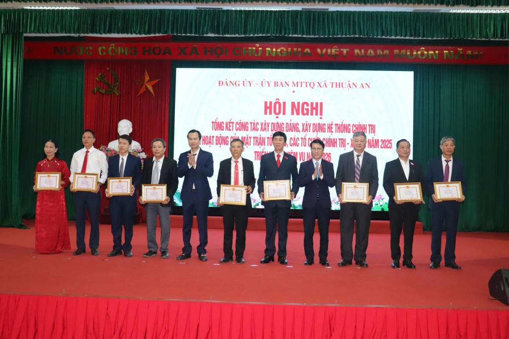 Nhân dịp này, Đảng ủy xã Thuận An đã khen thưởng 34 tập thể, 185 cá nhân có thành tíc trong công tác xây dựng Đảng năm 2025; 12 tập thể, 3 cá nhân có thành tích có thành tíc trong công tác tuyên truyền vận động và thực hiện mô hình dân vận khéo năm 2025.